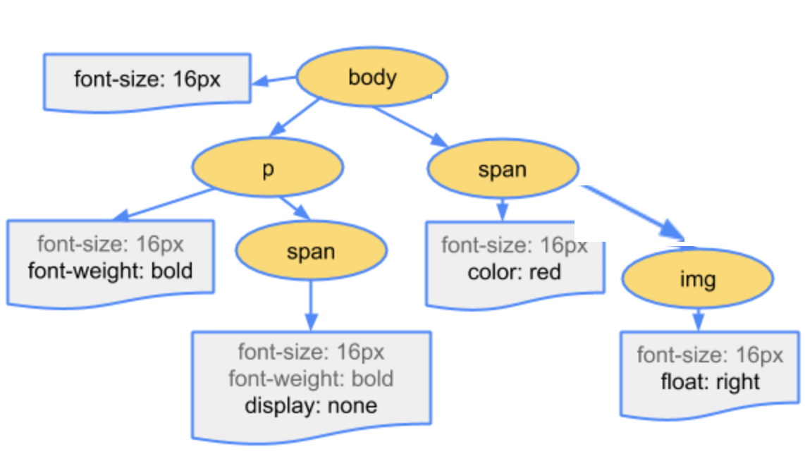 CSSOM은 CSS의 상속을 반영 ex) body요소에 font-size 지정시 하위 요소들에도 상속을 반영하여 적용